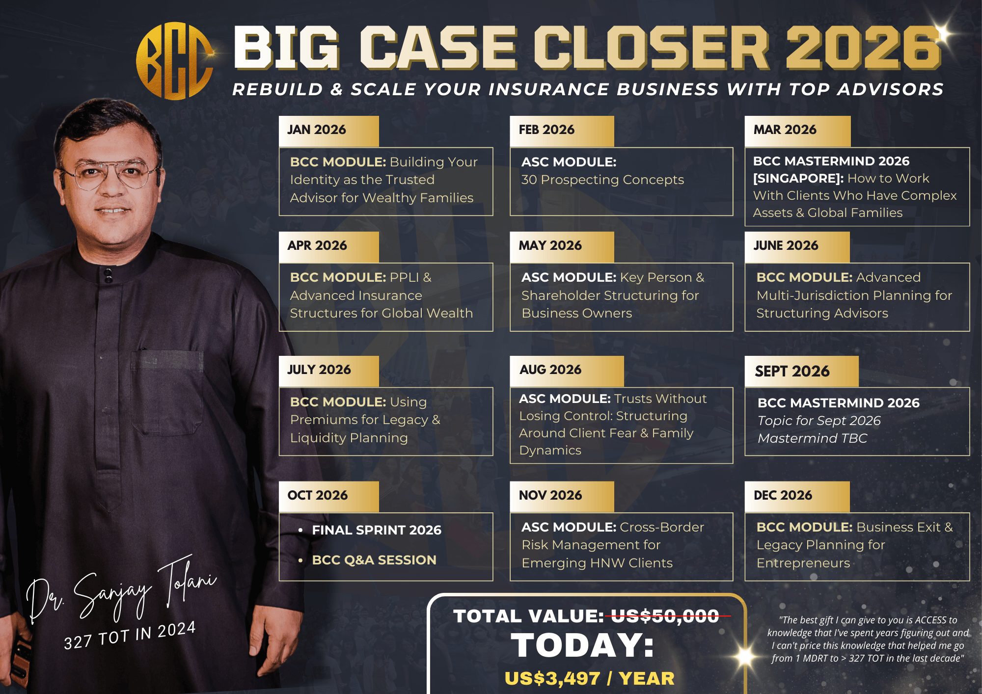 Focused Topics: Every session will cover specific topics like advanced asset structuring, big case closing, or specialized insurance niches, ensuring that discussions remain relevant and impactful.